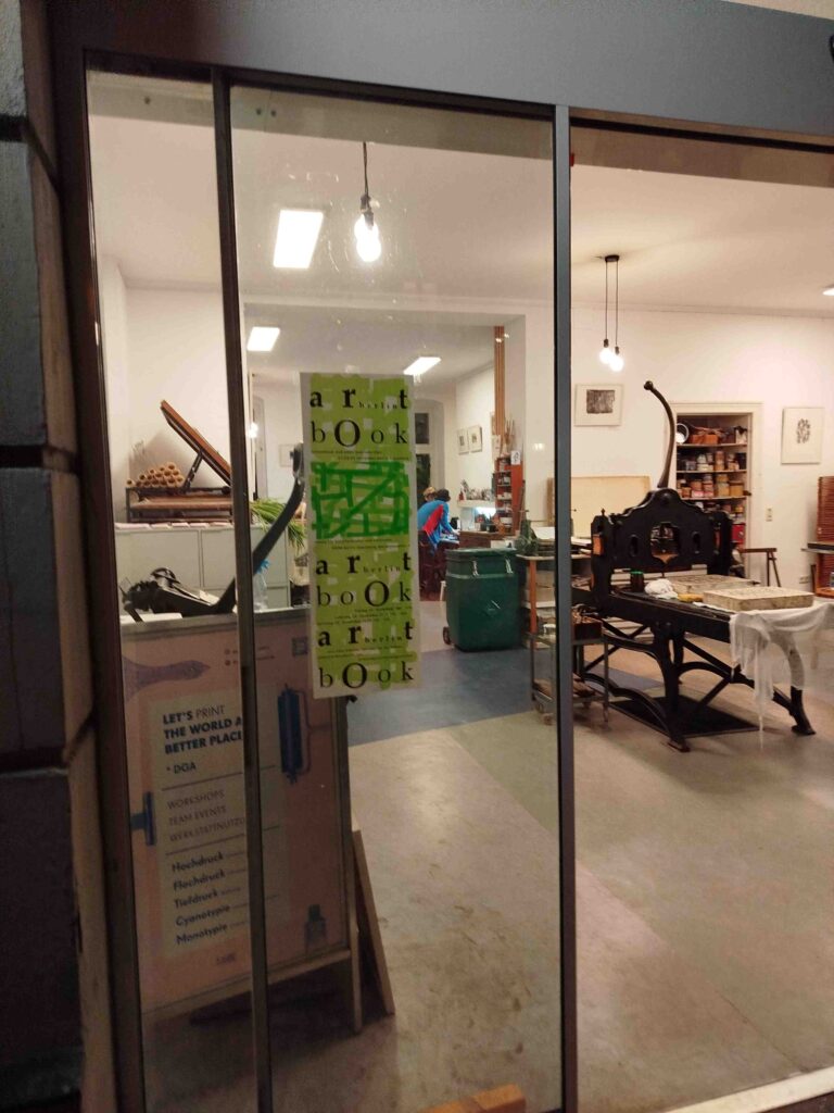 Auch das Druckgraphik-Atelier in der Dietrich-Bonhoeffer-Straße hat ein artbook-Plakat ins Schaufenster gehängt. Für mich quasi Rückkehr zu den Anfängen.