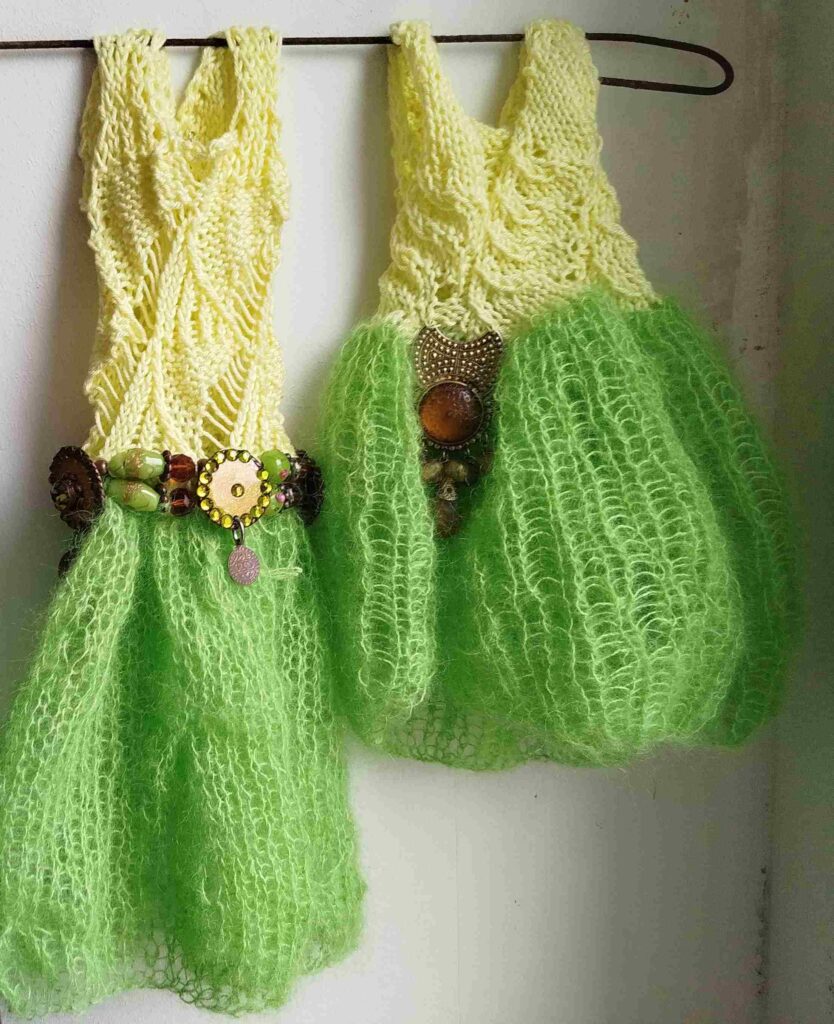 Es liegt definitiv an der Jahreszeit: Ich bin wieder mit Figuren zugange, und das fängt bei mir mit Kleidchen an – nach historischen Strickanleitungen, etwa von Juliane Pauker oder Nannette Höflich.